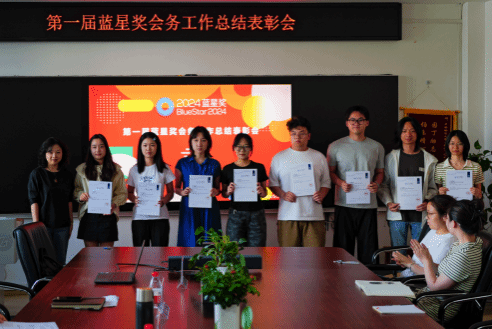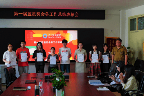 第一届蓝星奖会务工作总结表彰会在艺媒楼1209会议室隆重举行,会议由艺媒学院院长何清俊主持,学院班子成员及师生代表共同出席,视觉媒体系主任狄丞、环境设计系书记程璜鑫、视觉传达系教师叶可鸣、学工组辅导员曾戈晖、教学兼科研秘书万梓晗,以及蓝星奖设计大赛会务组全体成员参加会议。