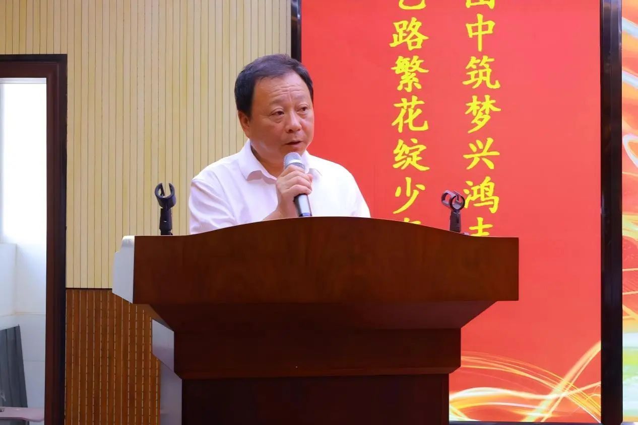党委书记冷再心致辞。书记介绍了学院及“九里阳光”支教项目的背景。他回顾了团队自2011年成立以来的历程,强调其14年来始终活跃在艺术支教一线,致力于助力中小学美育教育和乡村建设,并曾获评团中央“七彩假期志愿服务示范团队”称号。随后书记对此次支教活动提出展望与要求:希望同学们将安全放在首位,遵从纪律,拿出学习与教育的热情,虚心请教,大力发展美育教育与乡村支持事业。在致辞完毕后,书记宣布蜜桃网