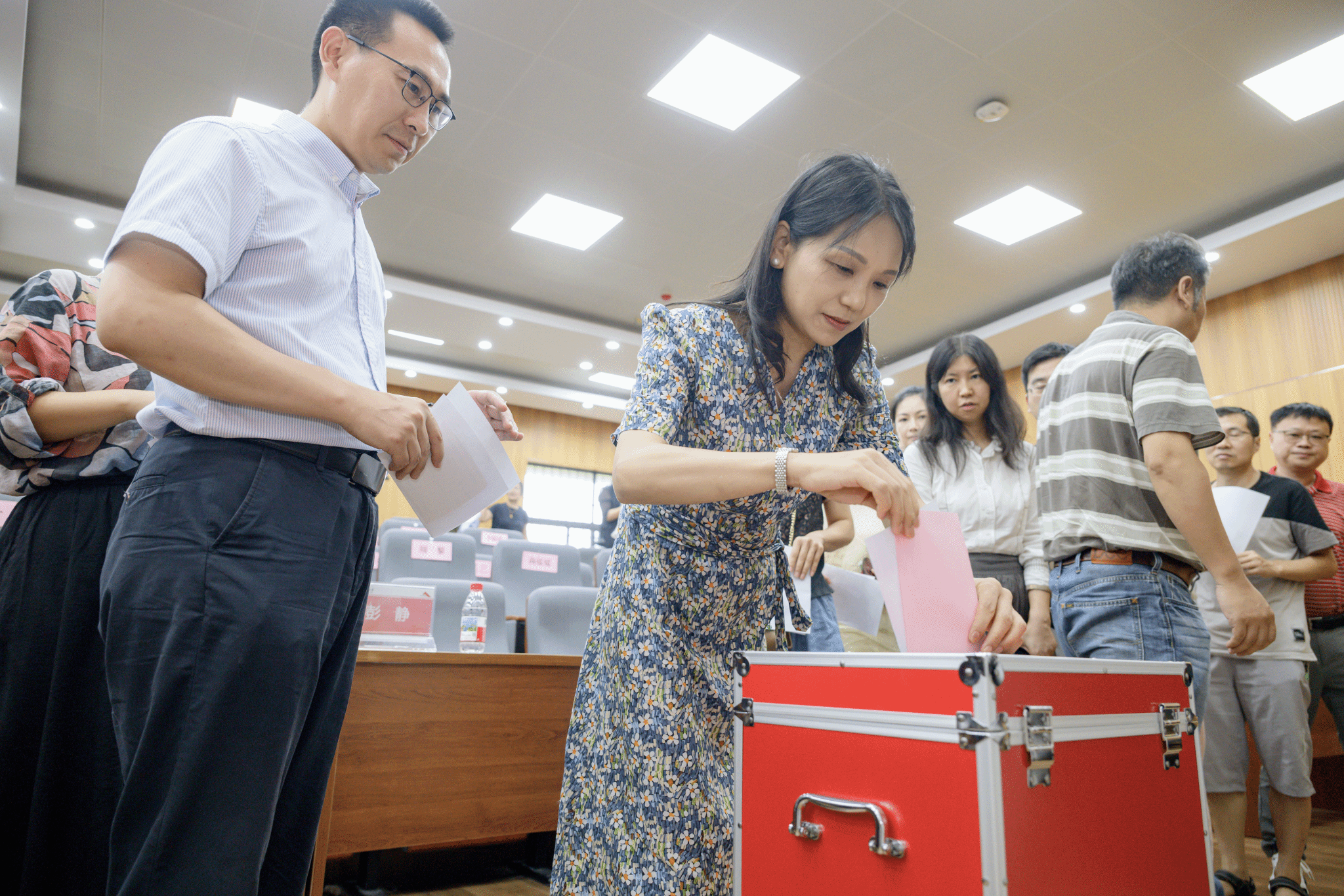 述职结束后,陈文武部长主持民主测评及民主推荐工作,全院教职工依照要求,对新一届行政领导班子及班子成员进行届满测评,对续任班子成员进行等额民主推荐。
