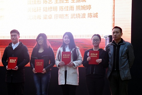 学子获得一等奖1项、二等奖2项、三等奖2项。唐辉明副校长、桂宇晖院长和邬海峰书记等12位嘉宾分别为获奖者进行了颁奖。