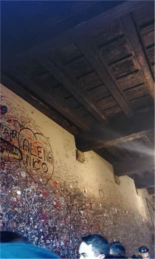 在这雄伟奇迹的一旁是著名的维多尼奥商廊,各种奢侈品林立期间,令人目不暇接。在考察商场国际一线品牌橱窗设计时,大家顺便享受了意大利随处可见的美味冰激凌。随后,写生实习小组参观了世界顶尖的斯卡拉歌剧院,外观普通的建筑沉淀着十九世纪以来积蓄的艺术底蕴。歌剧院前洁白的达芬奇雕像或许也暗中向大家诉说了这座建筑的艺术地位。午饭后,大家又接着参观了莎翁笔下的著名爱情悲剧中朱丽叶与罗密欧的住所。在这两座位于维罗纳的古老建筑的墙上,涂画着来自世界各地情侣对对方的甜言蜜语,形成了一处独特的爱情圣地。