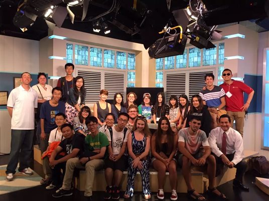 学生参观了著名的FOX电视台,与记者、编辑、节目策划人进行节目运营与制作交流,参与晚间新闻节目的录制工作;进入马萨诸塞州普利茅斯的地方广播台,了解当地DJ、编辑、管理人的工作,参与广播电视台节目相关节目运作。