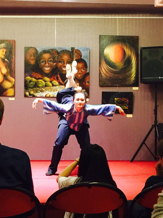 该校现代舞的老师与带团老师、音乐表演系副主任周黎老师交流了她对中国古典舞蹈的认识。演出结束后,师生们主动要求和音乐表演系师生交流,希望对中国音乐及中国地质大学有更进一步的了解。张理老师也向大家发出邀请,欢迎他们到我校进行交流访问。