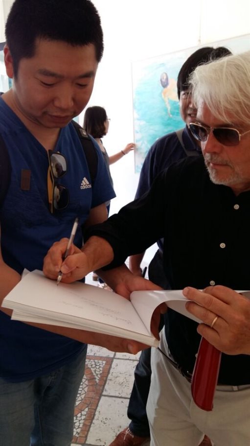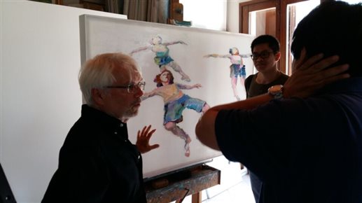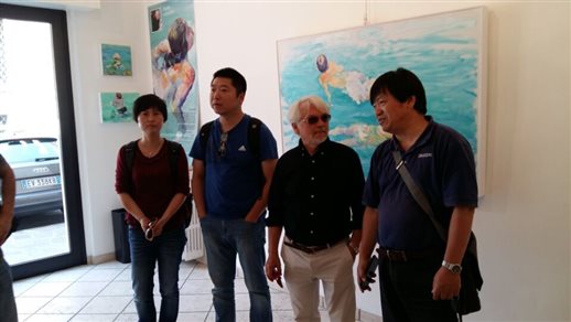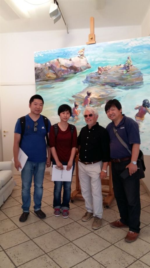 当地时间6月15日,世界文化遗产古城曼托瓦(mantova),当代艺术系教师与居住于此的意大利艺术家克劳迪奥(claudio)见面。克劳迪奥热情的引导大家参观他的画廊和工作室,与教师们一起分享他的创作理念,交流讨论当代艺术现状与走向。临别,他向教师们赠送了画册,并表达了与蜜桃网 师生交流合作的强烈愿望。