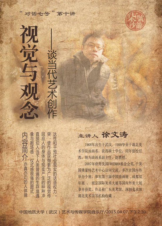 徐文涛:1999毕业于湖北美术学院油画系,获得硕士学位,同年留校任教,现为油画系副主任、副教授。2007年获得美国FREEMAN基金会奖,于美国佛蒙特艺术中心访问交流。多次在国内外举办个展,参加第三届中国油画展、成都双年展、南京国际美术大展等国内外重大展事并获奖。作品被广东美术馆、深圳美术馆、湖北美术馆等机构收藏 。
