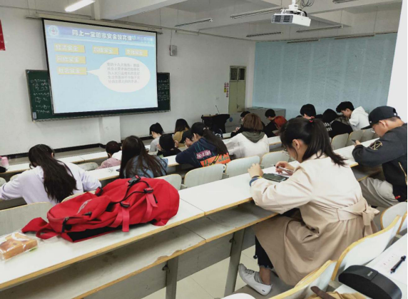 学生会主席戴传知同学宣布会议开始,他指出,安全是和大家每个人都息息相关的事,是一切活动正常开展的根本保障,期望每个人都能够认真参与到这次班会议题中来,随之播放了415国家安全教育视频,在场的学生们都在认真感受视频内容,学习安全知识。