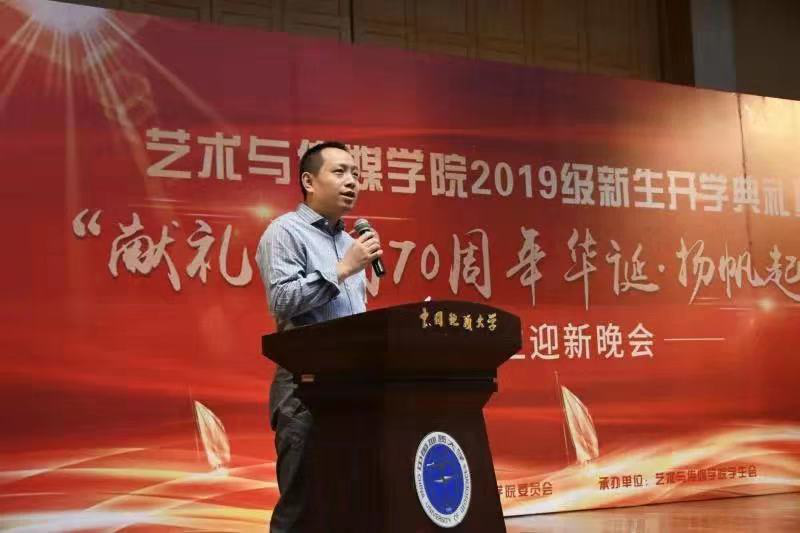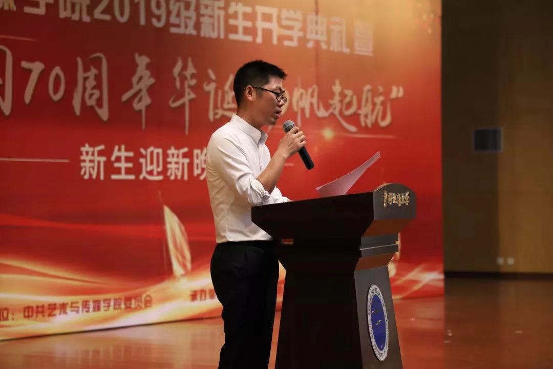 2019级新生开学典礼暨“献礼祖国70华诞·扬帆起航”迎新晚会在音乐厅隆重举行。学院党委书记郭秀蓉,院长桂宇晖,副院长张梅珍、曾健友、杨喆,院党委副书记兼2019级本科生辅导员吴仁喜,各系支部书记、系主任、学工组老师们及2019级全体本科生新生和研究生新生参加典礼活动。典礼由吴仁喜主持。