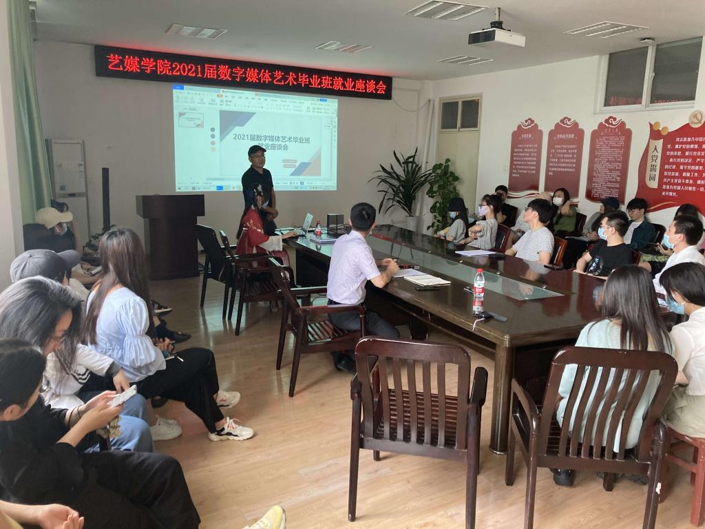 党委副书记吴仁喜老师主持召开2017级数字媒体艺术毕业班就业座谈会,2009届院友、武汉超方体信息技术有限公司总经理刘士超受邀参加座谈会,2017级数字媒体艺术毕业班约40名毕业生参与。
