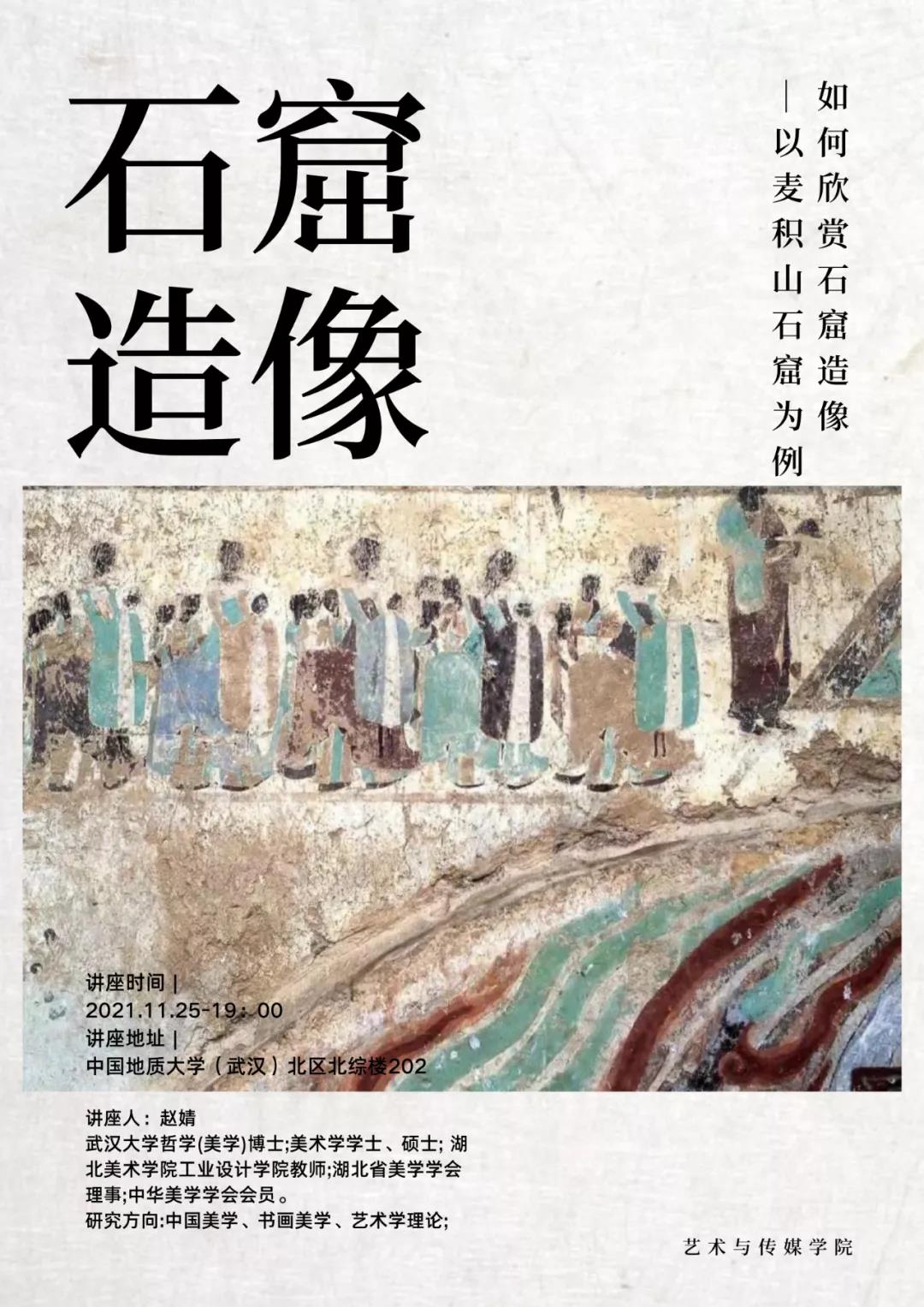 艺术传媒学院于11月25日19时于东校区综合楼201室举办了“如何欣赏石窟造像——以麦积山石窟为例”主题讲座。讲座邀请了武汉大学哲学(美学)博士、湖北美术学院工业设计学院赵婧老师为大家讲授这堂精彩纷呈的艺术欣赏课。课堂上,赵老师结合自身研究领域,详细为大家讲解了如何欣赏石窟造像,开阔了同学们的眼界,也为同学们补充了石窟雕塑相关的专业知识。讲座通过口述、图片等方式展示,生动具体,吸引了大家的兴趣和关注。