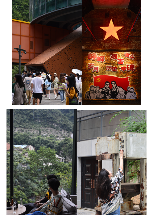 在负责人的带领下同学们一同步行前往,行路中感受自然风光,在809度假小镇接受了红色教育,参观了三线工厂改造项目。穿越时光隧道,清水红砖墙,朴质脱俗;苍劲青灰瓦,端庄厚重。这里保留了一代军工人岁月如歌的记忆,共和国一个特殊时期的历史见证。