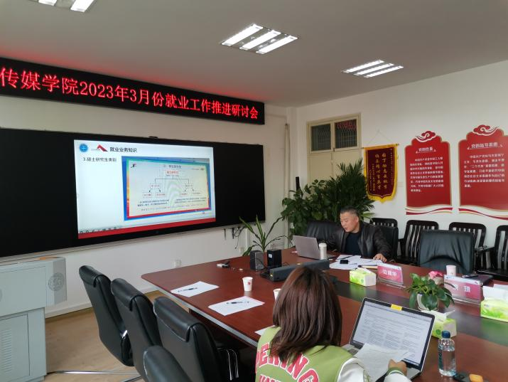 于艺媒楼1209组织召开2023年3月就业工作推进研讨会。学院领导班子、各系系主任、副主任、毕业班班主任、毕业班辅导员出席本次会议,会议由党委副书记边建华主持。