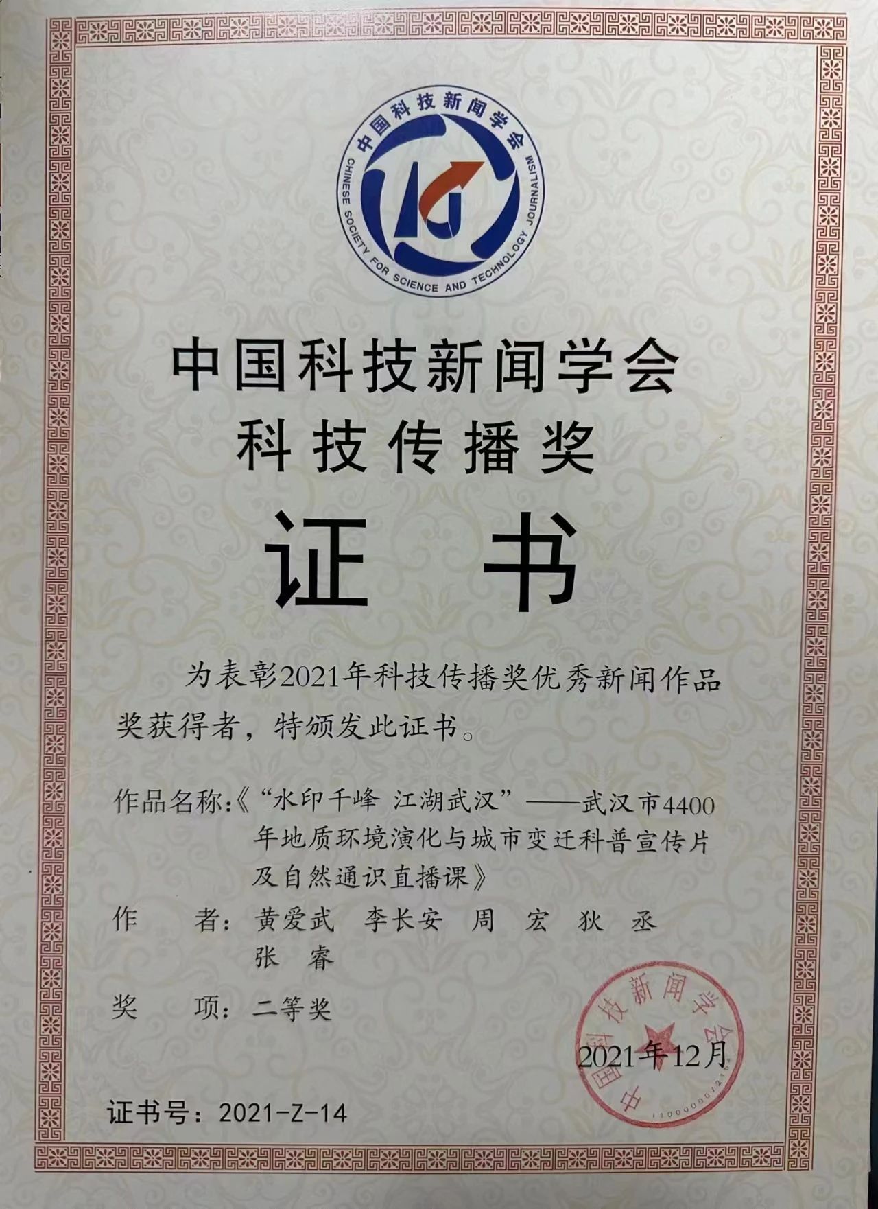 喜报!祝贺蜜桃网 教师荣获“2021年科技传播奖优秀新闻作品奖”二等奖