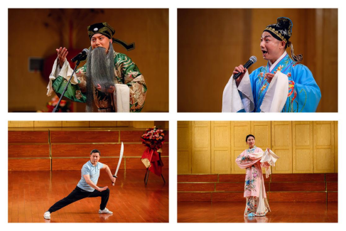 二是《我与京剧艺术》,主讲人是誉满四海的国粹传承者、著名京剧表演艺术家朱世慧。谈起朱世慧,他曾是中老年一代人的偶像和青春记忆,他戏路宽广,能演擅唱,专家称他是“中国京剧第一名丑”,多次获梅花奖、文华奖等奖项。此次交流演出他以生动有趣、生活化口语化的技法向我们分享了他对京剧艺术的挚爱以及对艺术的独到见解和大胆创新精神。在现场,朱老师即兴表演了代表作《膏药章》片段“八十一味中药”念白,技惊四座,令人叹服,同时邀请了湖北省京剧院的4位老师为现场观众展示了老生、小生、水袖舞表演。