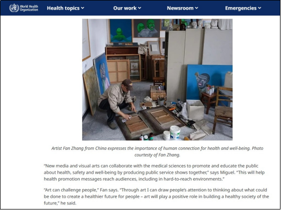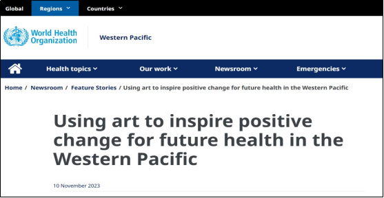 近日,世界卫生组织西太平洋区办事处(World Health Organization | Regional Office for the Western Pacific)官方网站在题为“Using art to inspire positive change for future health in the Western Pacific”的专题报道中刊发了蜜桃网