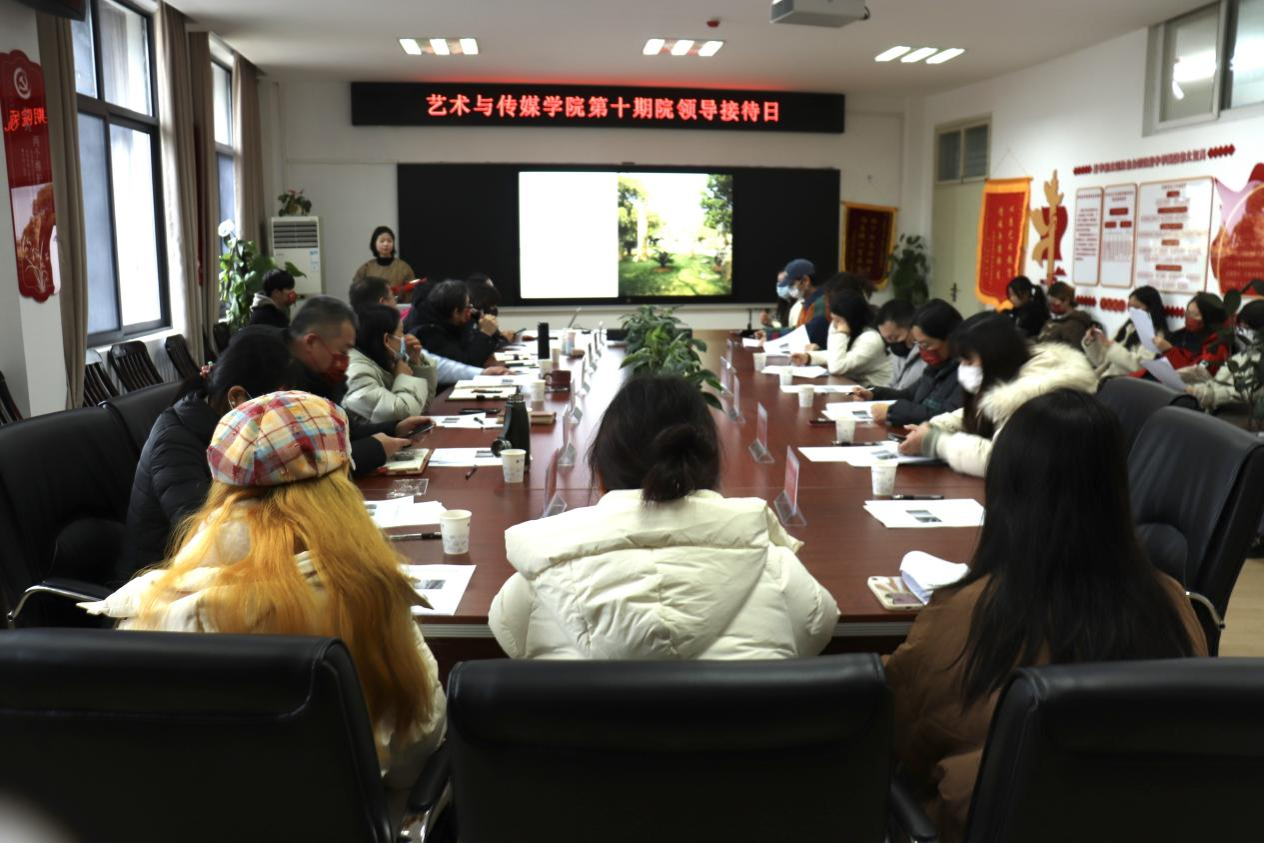 第10期院领导接待日在艺媒楼1209会议室顺利召开。学院党委书记晋曦,院长何清俊,副院长张梅珍、袁玥、彭静,党委副书记边建华,学院办公室主任李伟娜,视觉与媒体设计系主任狄丞,新闻传播学系主任宁薇,团委书记单湉艺,党建办公室主任陈习良,本科生教学秘书朱嬛,学工组辅导员曾戈晖以及各年级学生代表参加会议。会议由学院研究生会主席团成员周依主持。