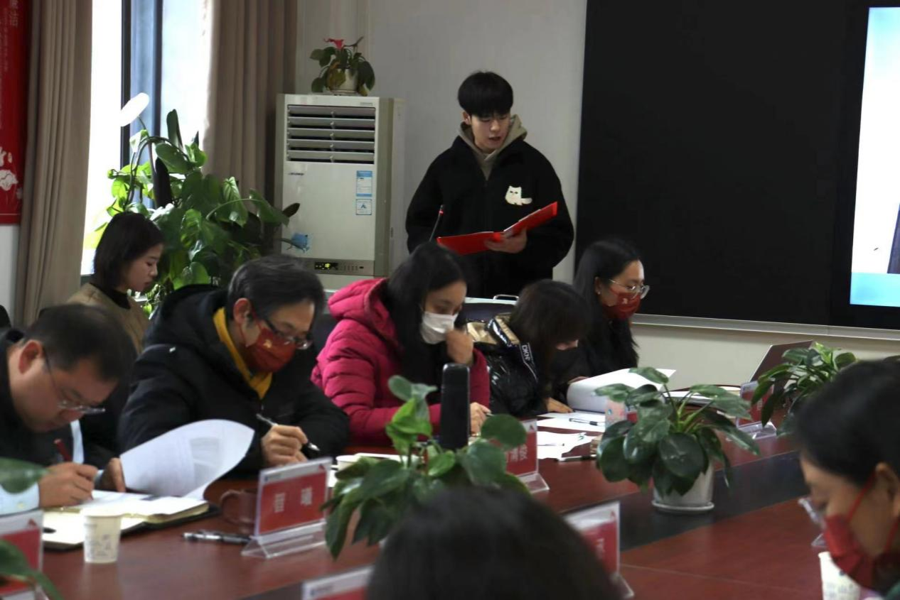 学生会主席余骥飞介绍本次院领导接待日的筹备情况。此次院领导接待日精简出13条提案,之后由青年志愿者协会对接各个班级,确定参会学生代表名单。