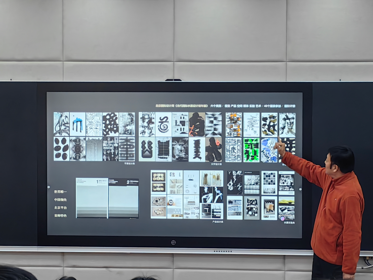 李中杨教授本次讲座主要围绕寻找落地的设计方式展开,强调多维知识的递进与转换,从一维到四维的递进,了解其功能特点,倡导从逻辑化思维到多维知识的交叉创新学习方式,以创新课程《水墨设计》为例。从优秀创意思维与设计分析、中国设计的智慧、研究所设计团队作分析,探索如何让创意在设计中落到实处。在设计研究理论与方法,设计选题与思路,设计学科特色与产教融合,搭建重要设计平台 形成有效资源链接,文化创意可持续发展与实施关键词,国家未来设计发展趋向中强调设计教育与产业的思考。李中杨教授在讲座中多次强调从多维角度考虑设计,提高综合设计及思维能力,对本次同学们的设计思维与方式有极大的帮助。