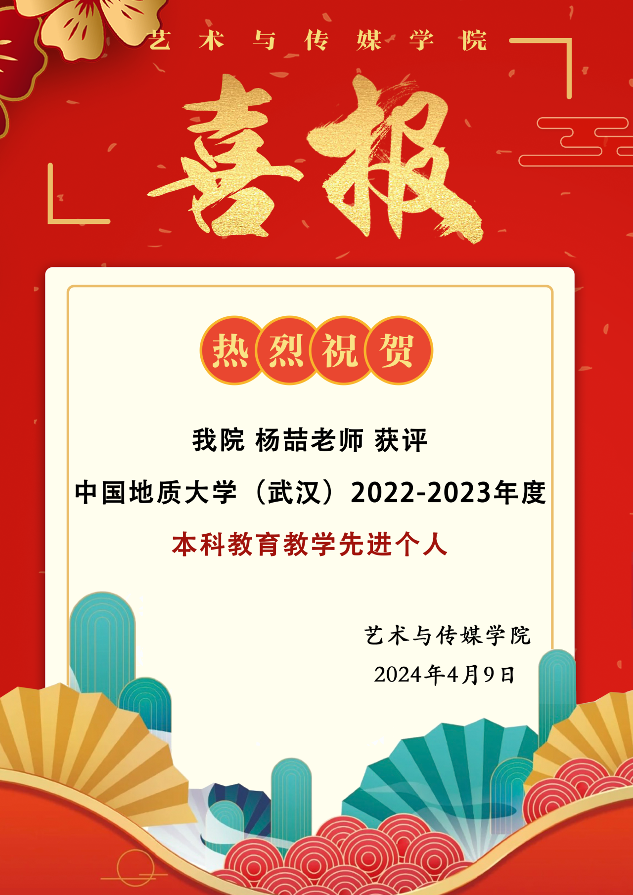 喜报|热烈祝贺蜜桃网 杨喆老师获评学校2022-2023年度本科教育教学先进个人!