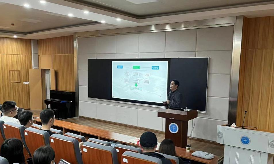 李教授也从汉字的文化内涵出发,讲述了汉字在建筑设计内涵中的运用,汉字的字形在研究建筑设计构成的意象体现。同时以河南省博物馆的建筑形象说明了其意象来自于古建筑观星台的建筑意象。