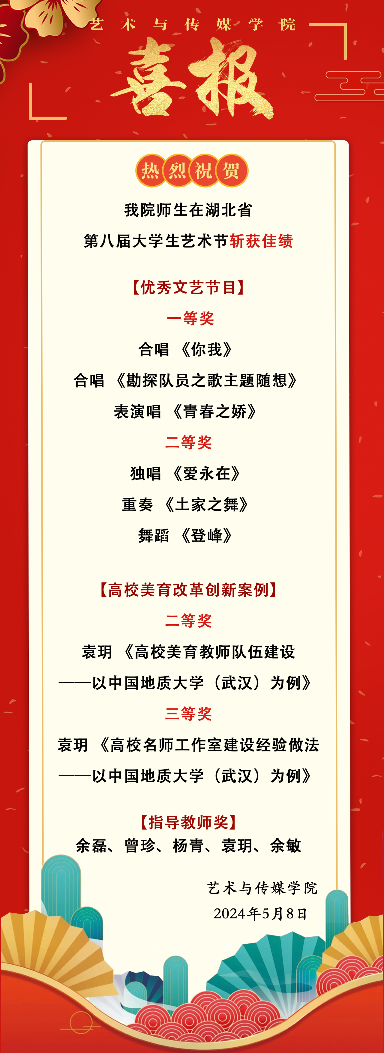 多部作品斩获湖北省第八届大学生艺术节多个奖项,不仅是对专业教学成果的肯定,更是学校美育工作在省内的一次成功展示。未来,蜜桃网