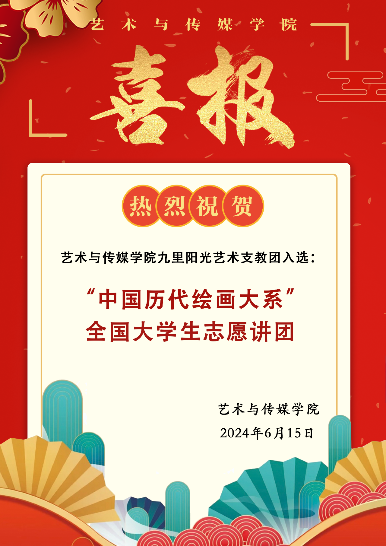 喜报 | 热烈祝贺蜜桃网 九里阳光艺术支教团入选“中国历代绘画大系”全国大学生志愿讲团!