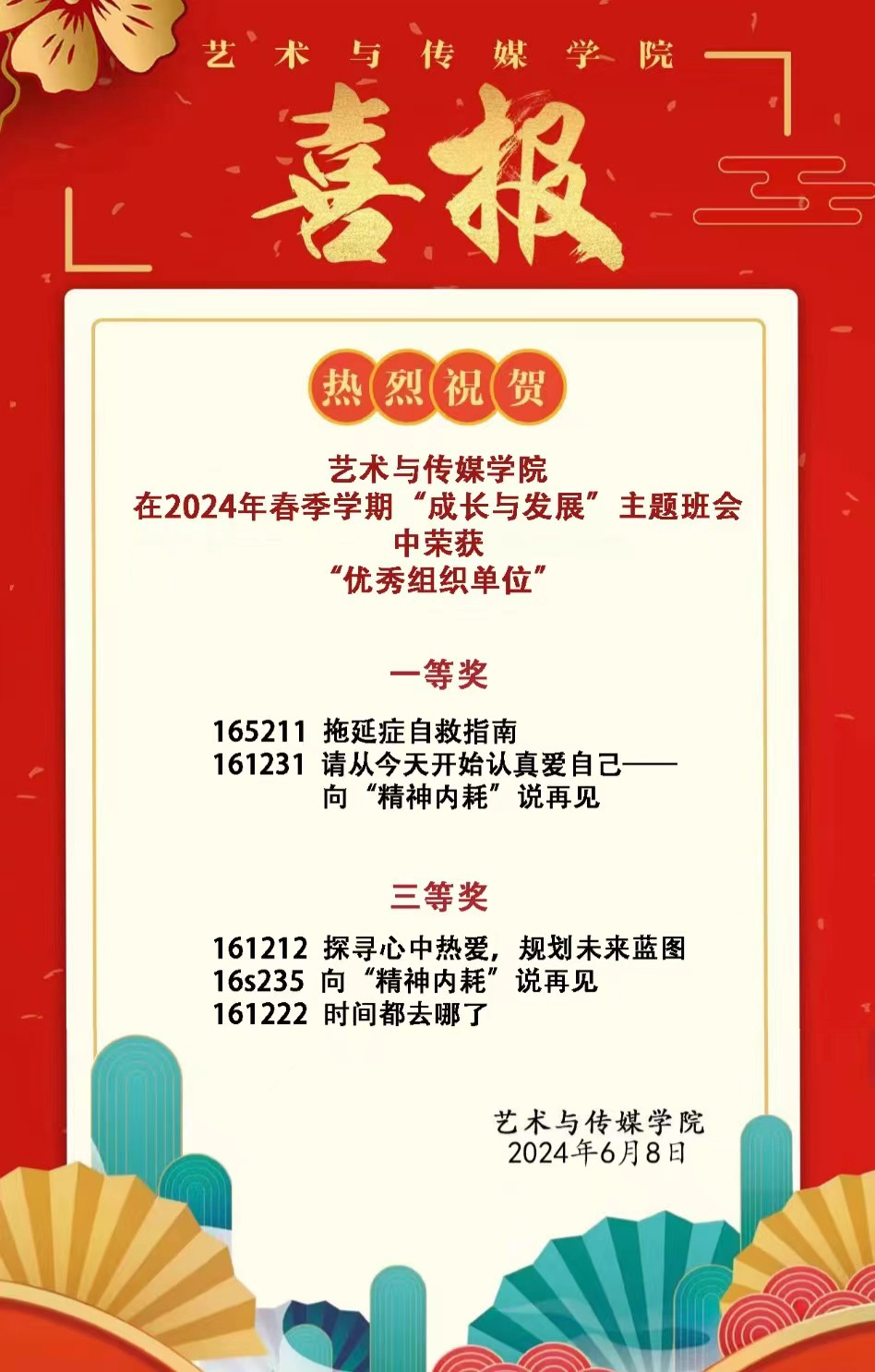 喜报 | 热烈祝贺蜜桃网 在2024年春季学期“成长与发展”主题班会中斩获佳绩!