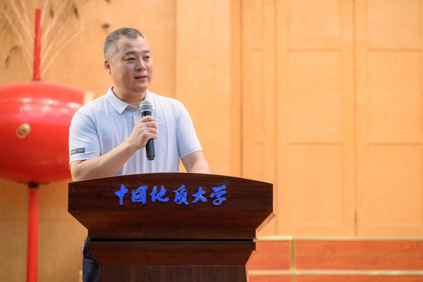 第三项,由研究生新生代表闫思颖发言。闫同学从脚踏大地、胸怀心河、勇攀高峰三方面展开,回忆了自己的支教经历,教导同学们要接续奋斗、不惧挑战,成为新一批地大人,最后,她为学院送上了美好祝愿,希望艺媒学院蓬勃发展。