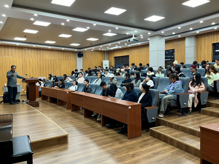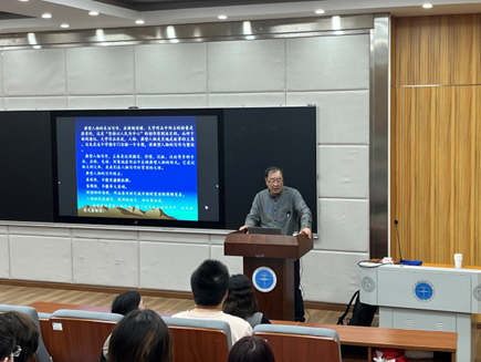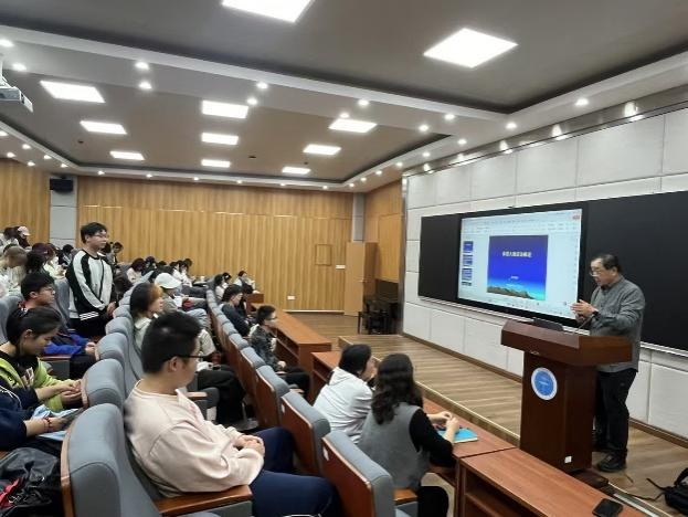 新闻传播系主任宁薇主持讲座。她介绍了陈国栋的简历。他是中国行业报协会名誉副会长,原中国自然资源报社社长。中国自然资源作家协会主席,中国作家协会第十届全委会委员,《大地文学》主编,中国地质大学(北京)高级研究员、文学创作中心主任。蜜桃网