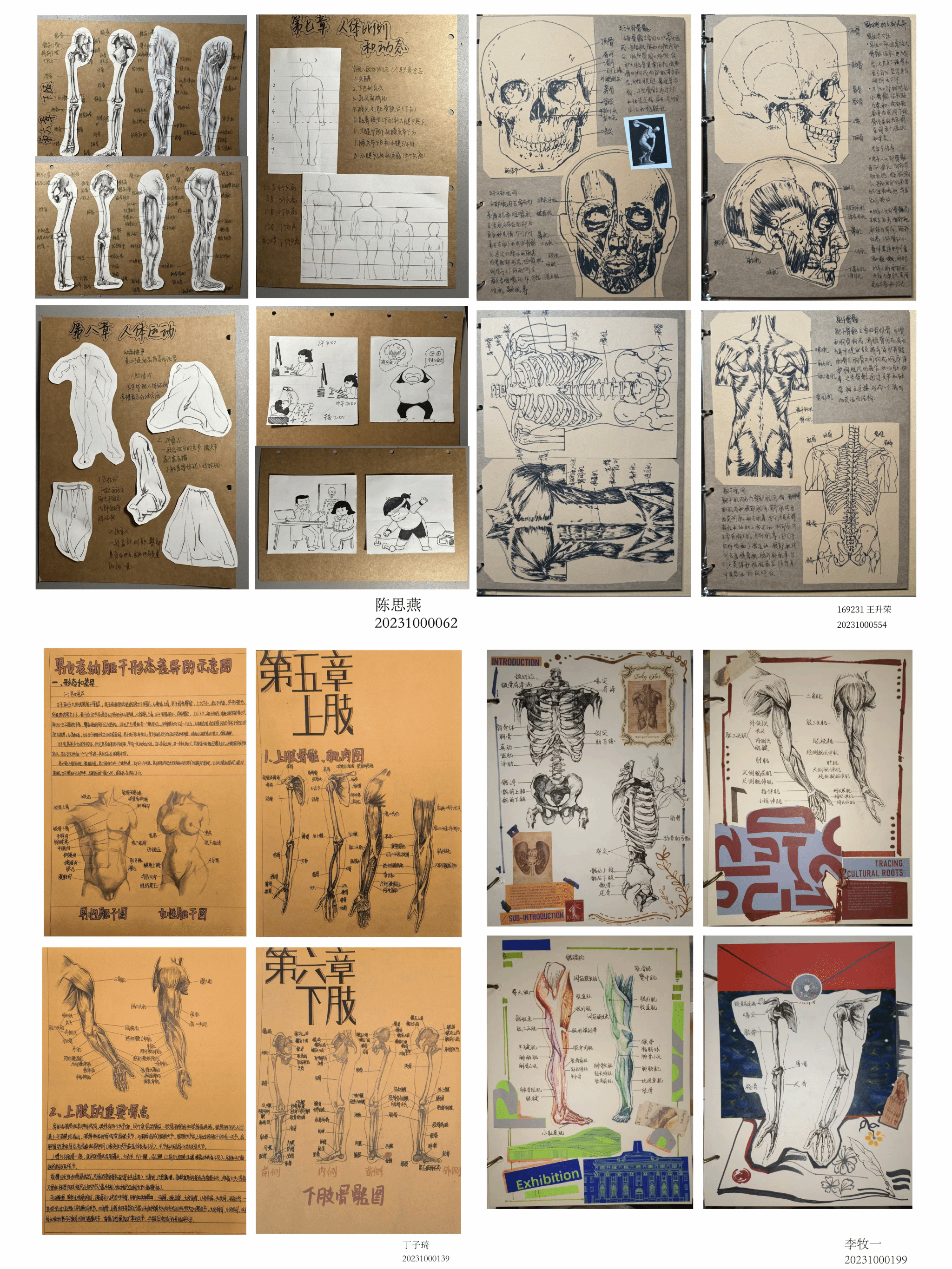 学生们将所学知识与艺术实践相结合,创作出了具有个人特色的艺术作品。结合课程知识,撰写了一系列参展论文,展现了对艺术与解剖学融合的深刻理解和独到见解。不仅详细描述了展览中作品的艺术特点和风格,还对作品中的人体结构进行了深入剖析。运用课程知识,对画中人物的姿态和动作进行了科学的解读,更深入地理解作品的艺术价值。