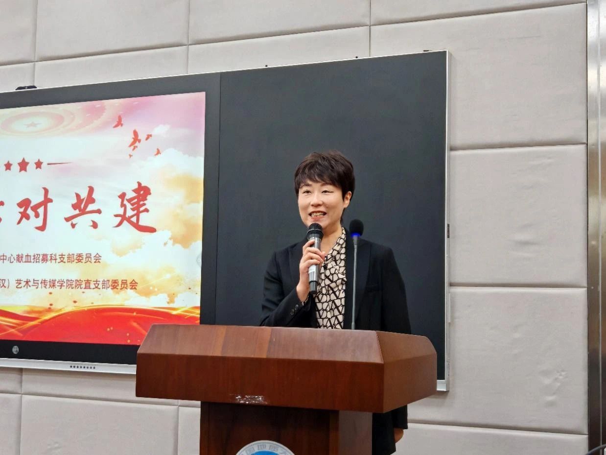 接下来,武汉血液中心党委委员、副主任杜思颖强调了本次共建活动的重要意义,指出无偿献血是一件利人利己的善事,并对学校和学院多年来对该项目的支持表达了感谢。杜主任还向大家现场分享了优秀献血者的感人事迹,这些故事温暖人心、极具力量。