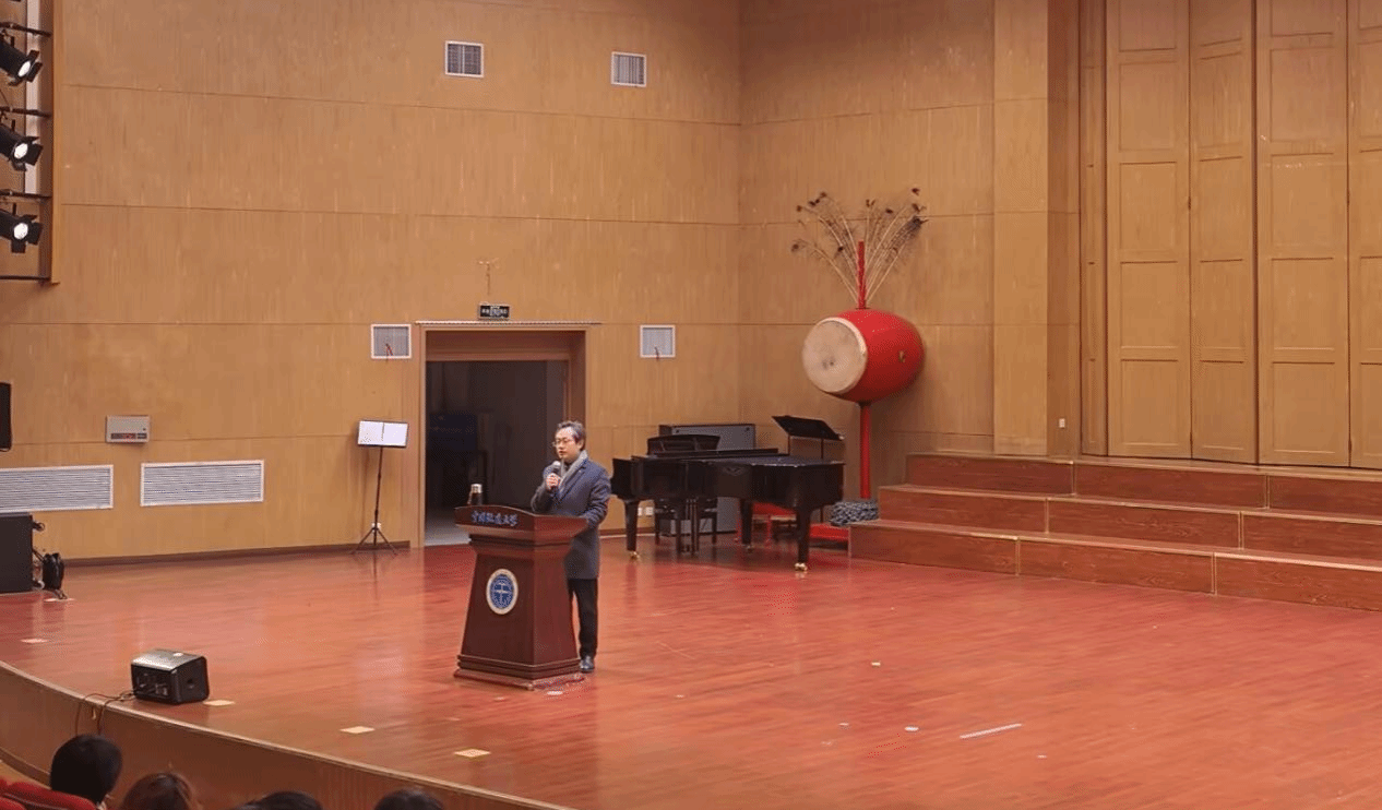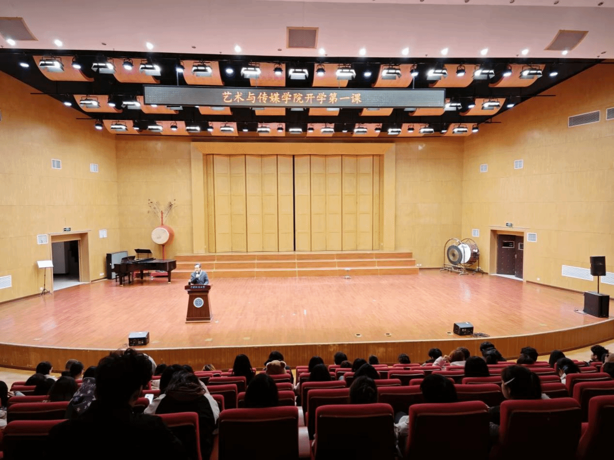 于3月2日晚在北区音乐厅举办“开学第一课”主题教育活动。学院院长何清俊、党委副书记边建华、学工组辅导员曾戈晖、兼职辅导员吴健及2024级全体本科生参加本次活动,围绕“人文传承、技术赋能与跨界创新”主题,共话新时代大学生的使命与担当。