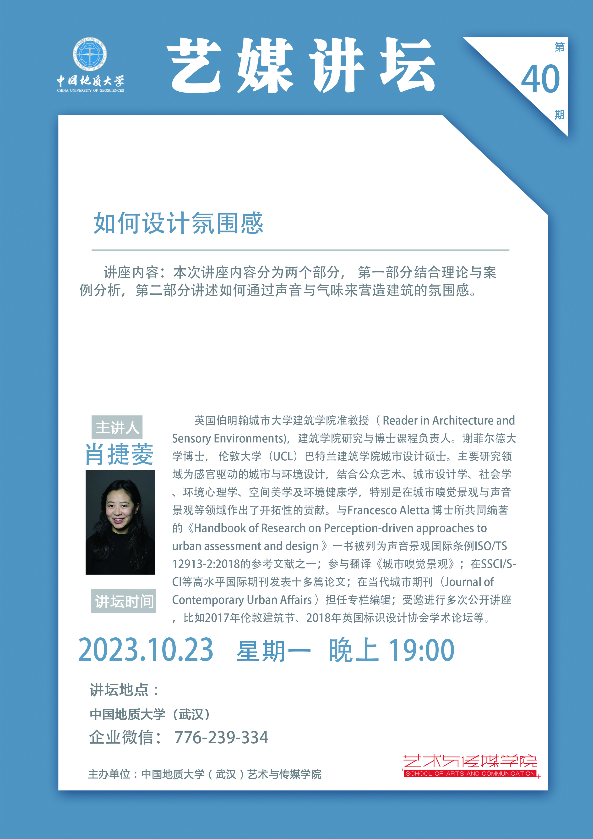 [2023年10月23日]学术讲座:英国伯明翰城市大学建筑学院教授肖捷菱讲座