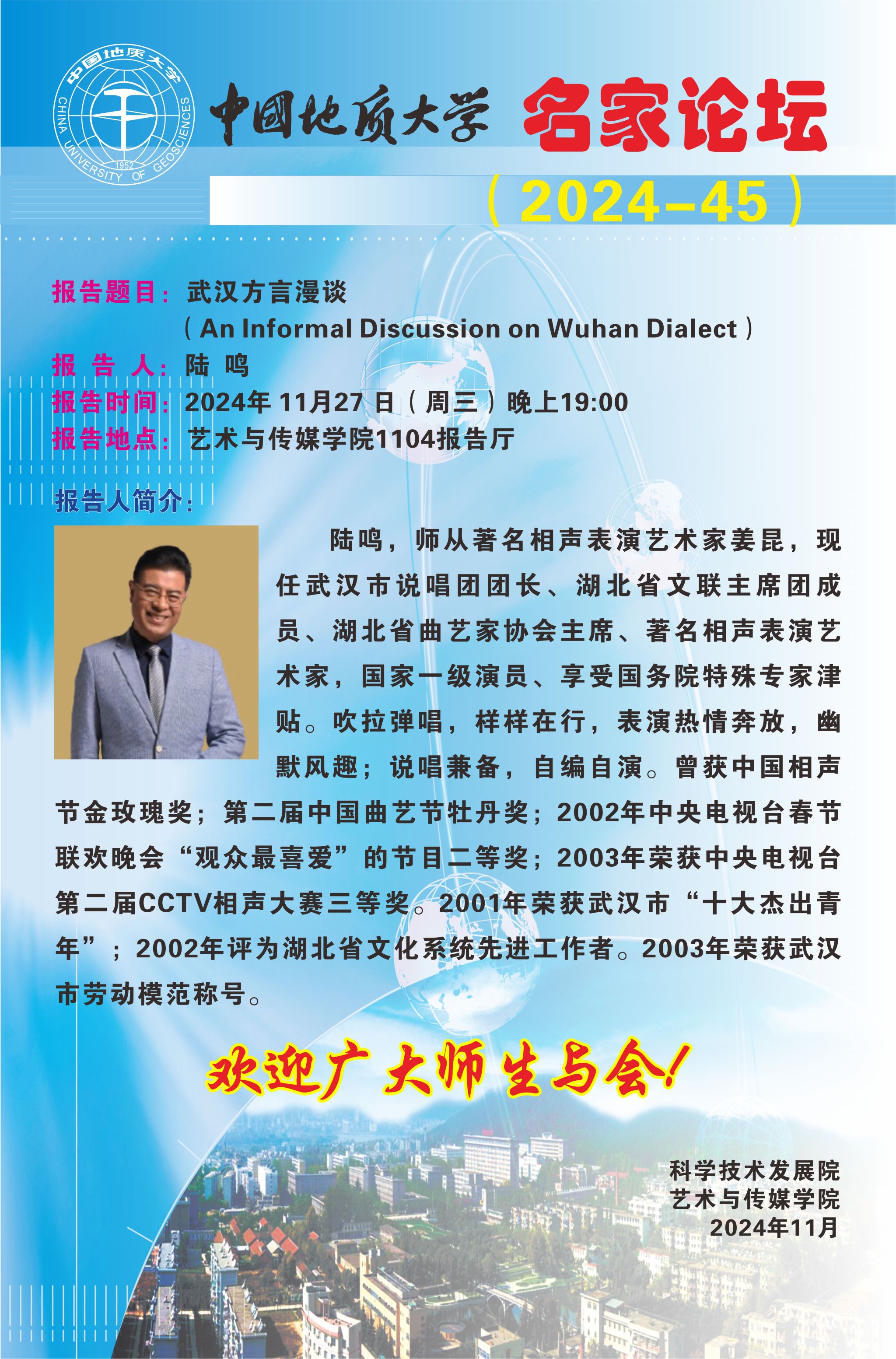 【2024年11月27日】名家讲坛:湖北省曲艺家协会主席、国家一级演员陆鸣艺术家讲座