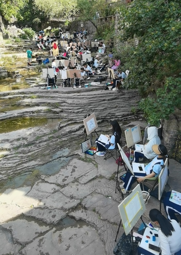 在高家台写生两天后。老师们又带领我们大家去参观参观5A级景区太行大峡谷。上午-桃花谷、太行天路,桃花溪穿梭于山谷之间。同学们领略大自然的鬼斧神工。