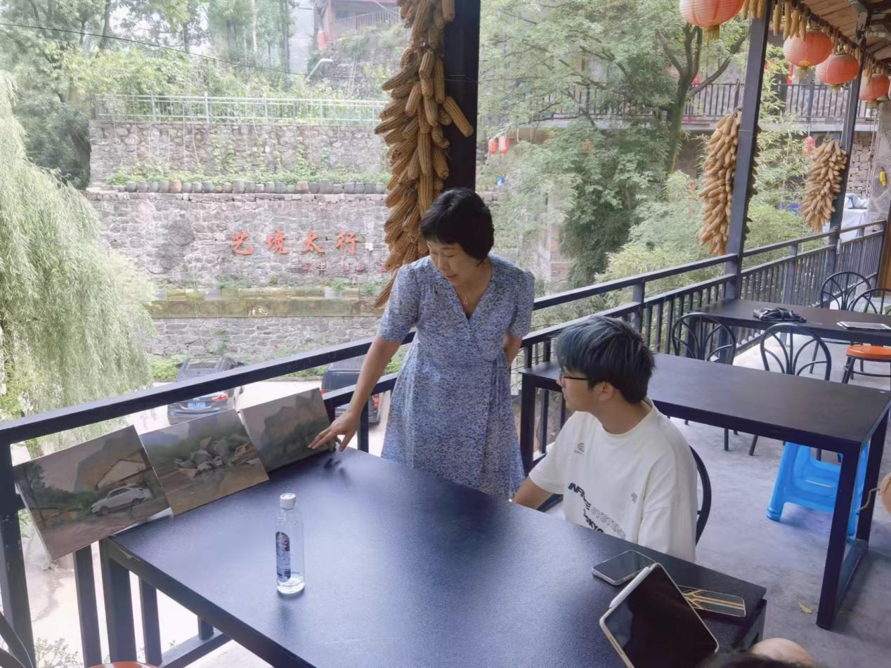 到达写生基地休整一晚。次日,周老师、郑老师和池老师带领同学们前往高家台画家村参观,并进行自由写生。