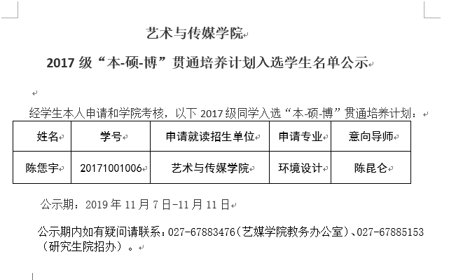 蜜桃网 2017级“本-硕-博”贯通培养计划入选学生名单公示