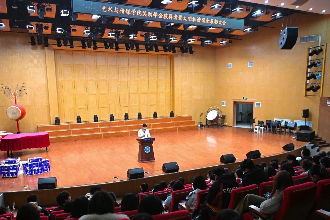于北区音乐厅举行奖助学金获得者暨文明和谐宿舍表彰大会。学院党委副书记边建华,团委书记单湉艺,专职辅导员陈习良、曾戈晖,学工组兼职辅导员,2025 年全体本、研奖助学金获得者,2025 年 10 月“文明和谐优秀宿舍”的全体成员、各班级班长、生活委员、所有宿舍长共同参会,本次大会由辅导员陈习良主持。