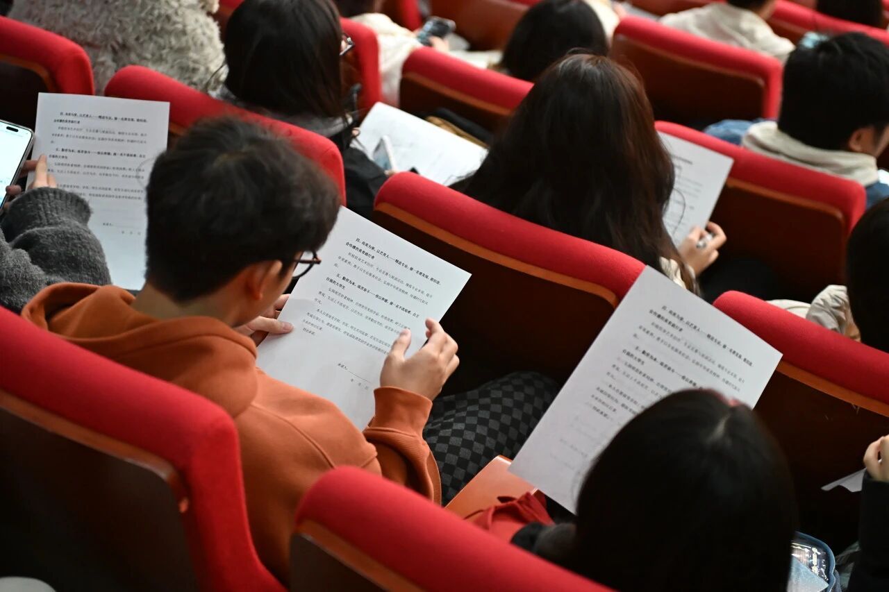 首先,陈老师宣读了2025年获得奖助学金的学生名单,鼓励获奖同学珍惜荣誉、再接再厉。随后,全体获奖同学郑重签署《日常行为规范承诺书》,承诺将以更高标准严格要求自己,在学业与品德上双向精进。