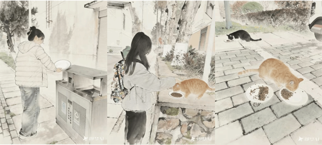为弘扬雷锋精神、践行志愿服务理念,3 月 21 日下午,视觉传达设计学生第一党支部在中国地质大学北区开展“春风有信・温暖同行” 校园流浪猫关爱志愿活动,支部党员、预备党员、发展对象及入党积极分子积极参与。活动中,志愿者们为校园流浪猫进行定点投喂并清理周边环境,以实际行动传递善意与责任,同时运用 AI 工具将温暖瞬间绘制成插画留存。此次活动让支部成员在实践中深刻领悟雷锋精神的内涵,大家纷纷表示将以此为契机,持续弘扬雷锋精神、踊跃参与志愿服务,用爱心与行动为建设和谐美好校园贡献青春力量。