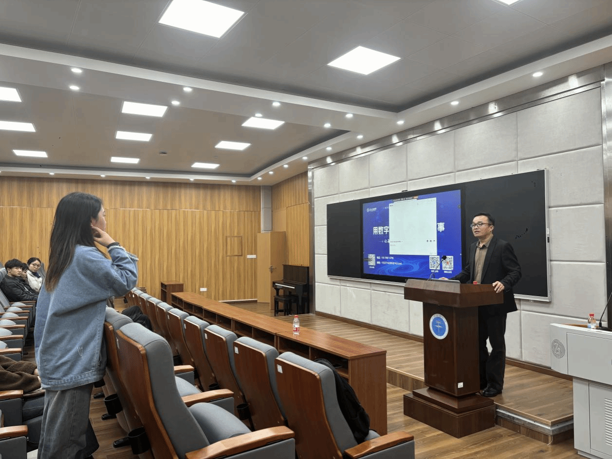 启点视界(武汉)科技创新服务有限公司程经理在本次宣讲中强调了科研可视化的核心价值——以受众为中心的逻辑梳理与数据呈现,并且跟同学们分享了当前学术成果转化中存在的信息传递壁垒。她提到团队通过视觉化语言帮助科研人员向投资人、企业及评审委员会清晰传递研究成果,暗示了当前传统学术表达方式在跨领域传播中的局限性。同时,介绍了奇点世界的跨学科团队和全链条服务体系,服务对象涵盖高校、医疗机构等多类客户,突出公司在科研可视化领域的专业性和资源整合能力。