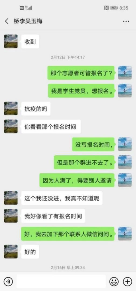 当从亲戚的朋友圈中看到自己家乡在招募志愿者的时候,我便没有任何犹豫的报名,在回到家之后隔离期结束以后,自己便随同队伍一起工作。我的工作主要是在社区门口登记每个人进出社区的时间以及返回时间,在封区之后,我们这边便是要求两天每家每户只能出去一个人,出行时间不超过两小时。所以按照要求严格对于进出门的人把关,是否佩戴口罩,体温是否正常。虽然工作很容易,但我知道,这个工作是在对整个社区的人负责。所以在志愿服务的那几天,我全身心投入。