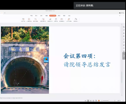 党委书记郭秀蓉老师对本次院领导接待日作总结发言。郭秀蓉老师表示,考虑到本次疫情的影响,大家在学习上可能存在一些问题,召开此次院领导接待日,也是希望帮助大家一起克服困难,渡过困难时期。郭书记鼓励大家在家保持乐观心情,努力学习,遵守学校和当地的疫情防控管理规定,待到全面战胜疫情时大家学校相聚。