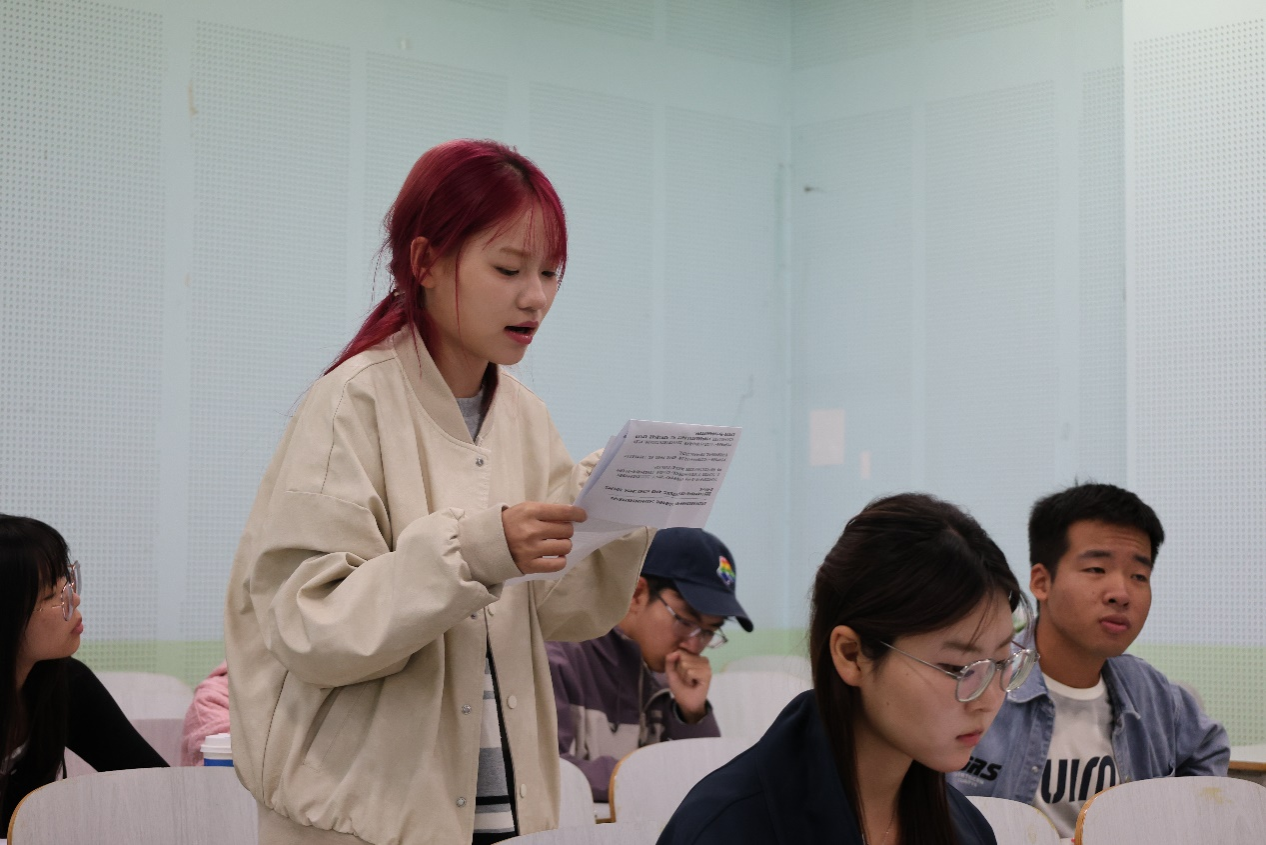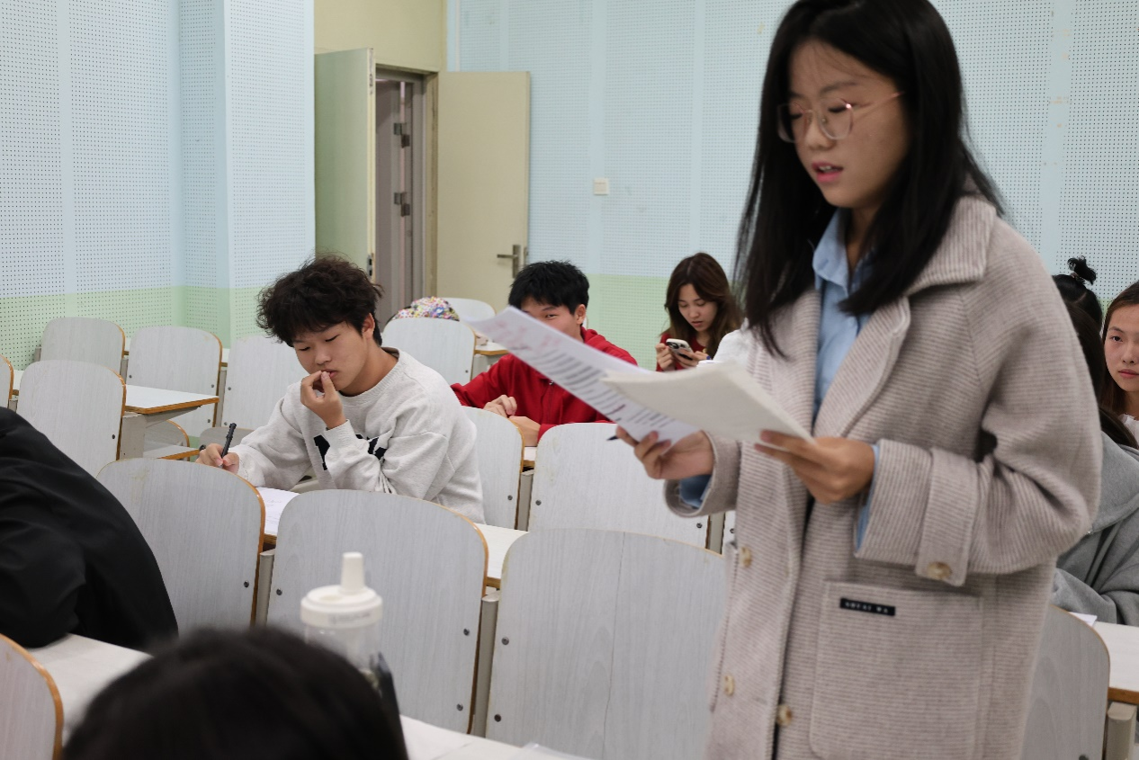 第六场比赛在北综楼305教室举行,由陈雅雯、敖汉斌、唐翼舟担任评委。本次辩题是“年轻人应该先攒钱/享受生活”,正方“我方观点都队”和反方“从容应队”就此辩题展开了激烈的辩论。正方围绕年轻人应该先攒钱这一观点引经据典并结合热点,让观点既有深度又具时代感。正方辩手清晰地指出了攒钱在诸多方面的优点,提出攒钱可以提高抗风险能力,为年轻人的未来提供了坚实的保障,让他们在面对生活的不确定性时能够更加从容不迫。反方的论述也同样精彩,他们认为通过享受世界探索世界,无疑为年轻人打开了一扇扇通往未知的大门。在这个过程中,他们能够拓宽视野、丰富阅历,从而实现真正的自我成长,这远比仅仅将目光局限于攒钱更为深远和有意义。反方辩手还引用名言、调查和具体实例的做法,更是为观点增添了坚实的依据。最终,正方“我方观点都队”赢得比赛,正方三辩黄子怡同学凭借其出色的表现荣获最佳辩手的称号。