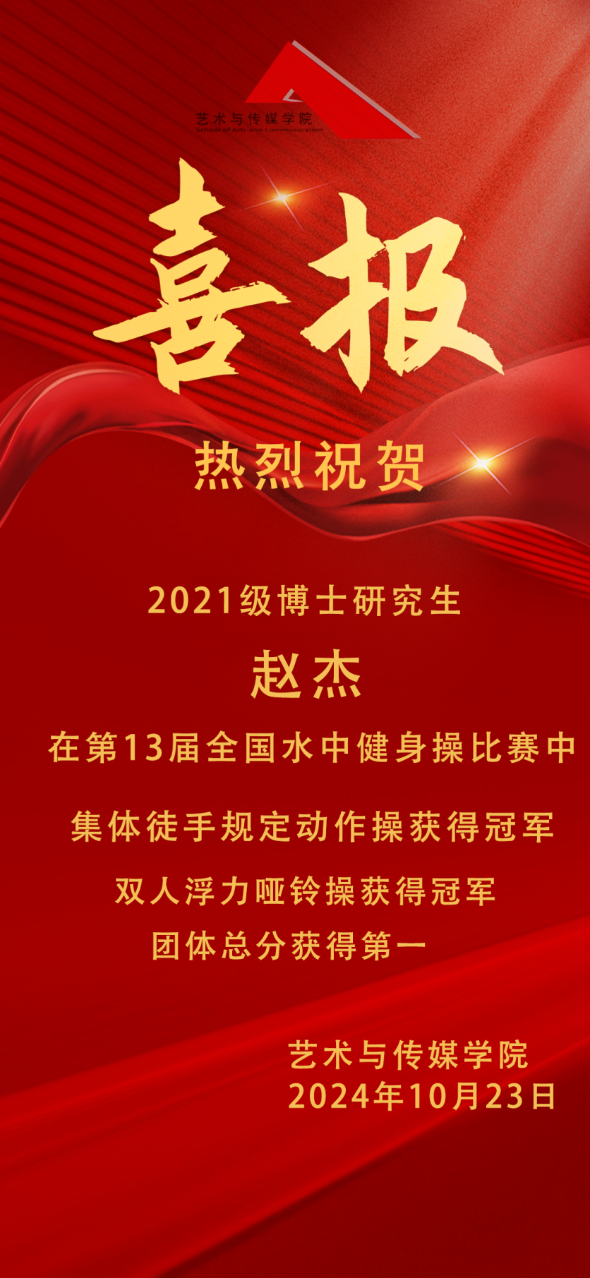 21级博士研究生赵杰获得集体徒手规定动作操冠军、双人浮力哑铃操冠军以及团体总分第一的优异成绩。