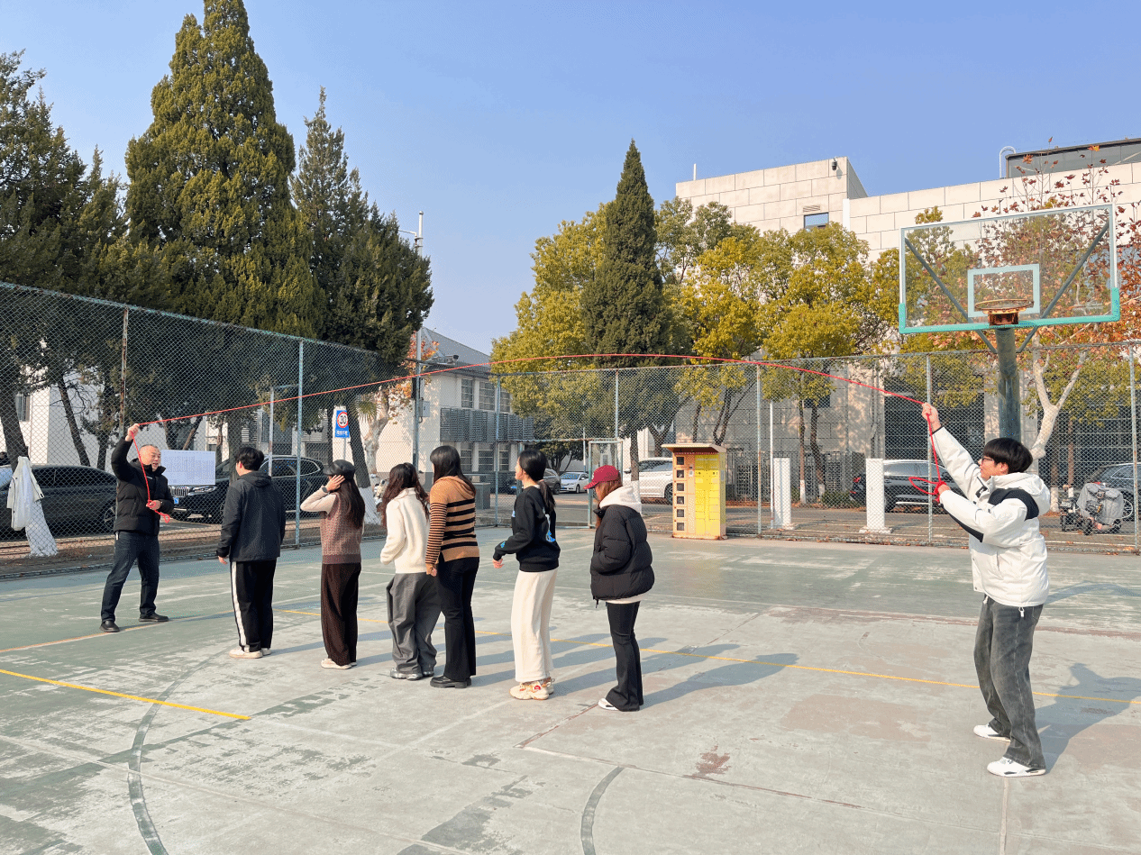 比赛当天,参赛队员们陆续到达场地,原本空旷的篮球场逐渐变得热闹非凡。各班级队伍迅速集结,有序地进行热身活动。尽管热身过程中出现了一些困难,如熟悉队形、调整间距、掌握节奏等,但同学们并未气馁,每一次绊绳都是对技巧的一次磨练。