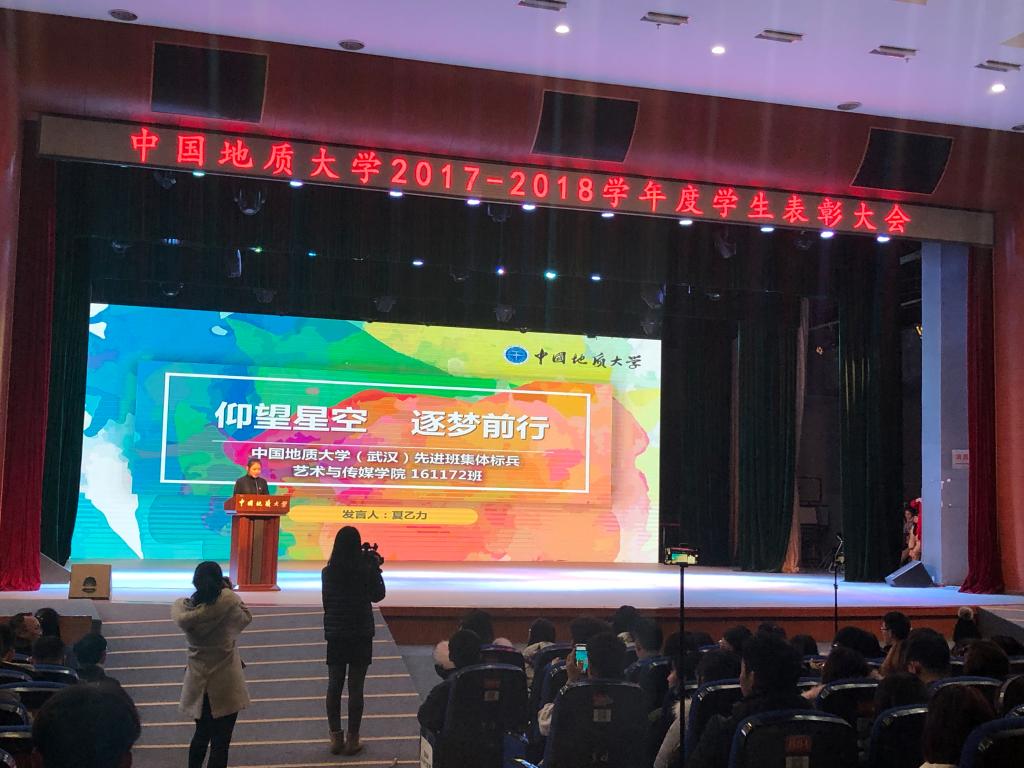 本科2017级161172班班长夏乙力同学作为年度先进班集体标兵获奖班级代表,以《仰望星空,逐梦前行》为题做大会主题发言,分享了蜜桃网
