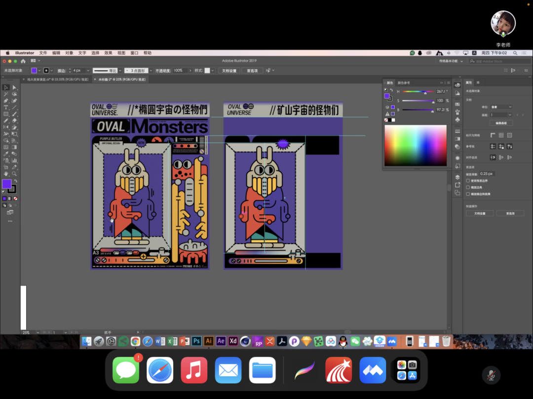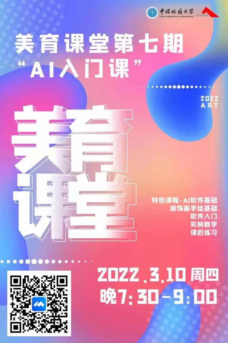 交流环节中老师对于同学们提出的问题也都耐心地进行了解答。李老师最后用一个简单且实用的例子,带着同学们逐步临摹做出了一张海报,进一步加深了大家对AI软件操作的理解,至此本期美育课堂顺利结束!