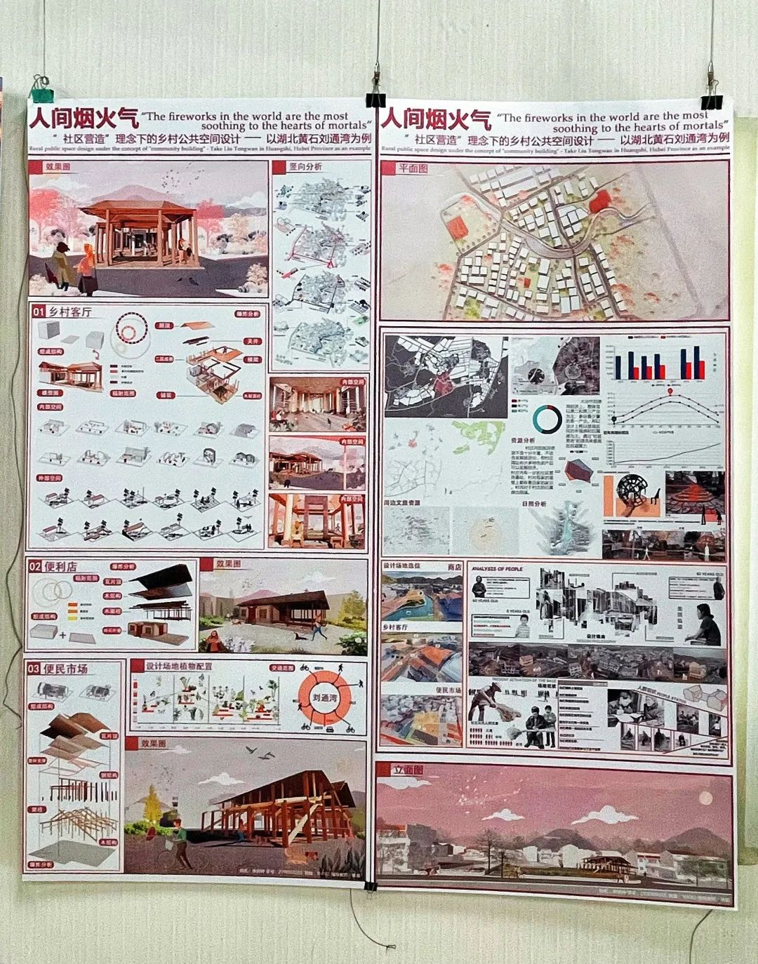 44位同学的作品设计风格各有不同,表现手法多样化,展出形式新颖,有同学在展板的基础上也加入了模型的展示。此次毕业展充分展示了2022届环境艺术设计专业毕业生的专业水平,其中包含了同学们四年来对专业知识的体现和总结。