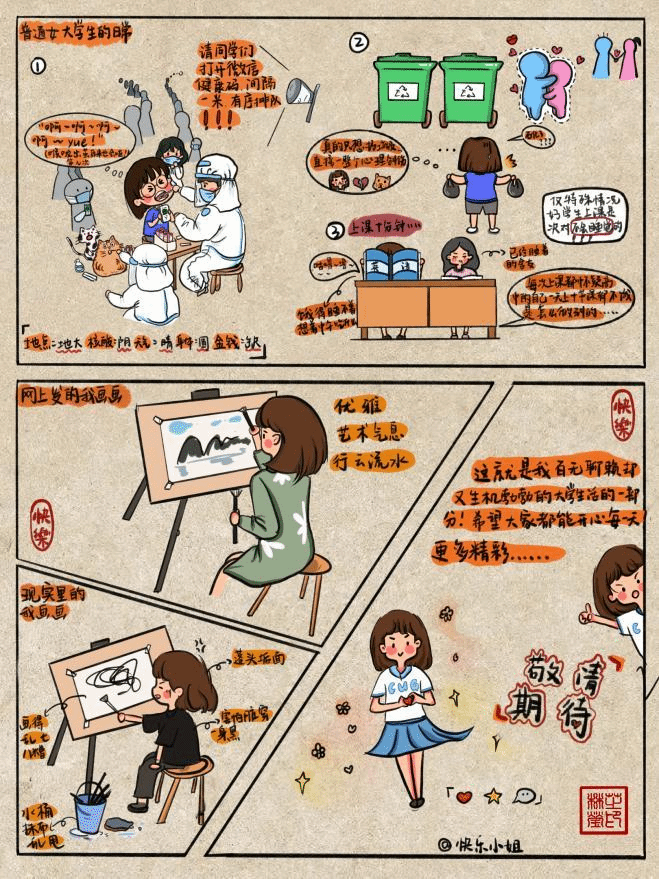 这个系列活力满满,作者带着对春天来临的欣喜,画下了这组图片。疫情下仍然有青春活力的大学生活,仍然有“春色满园关不住”的美景,不仅如此,还有和朋友们一起嬉闹的快乐!
