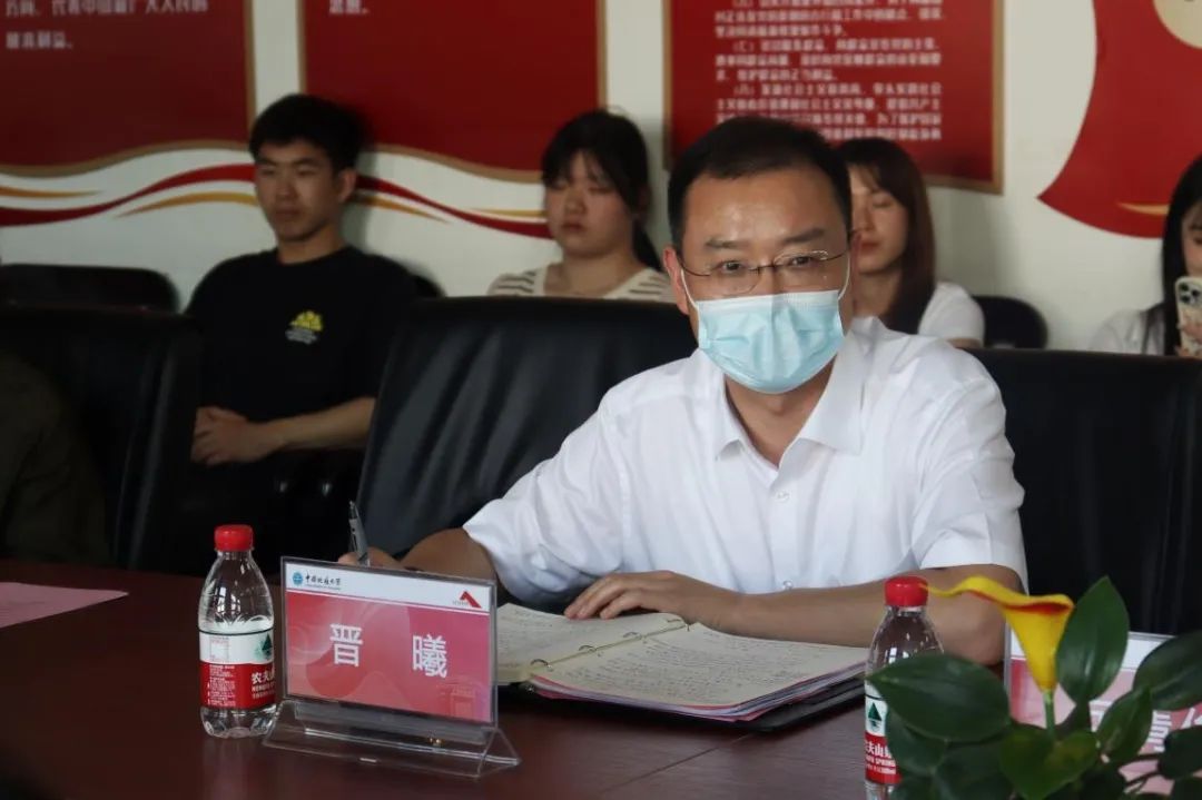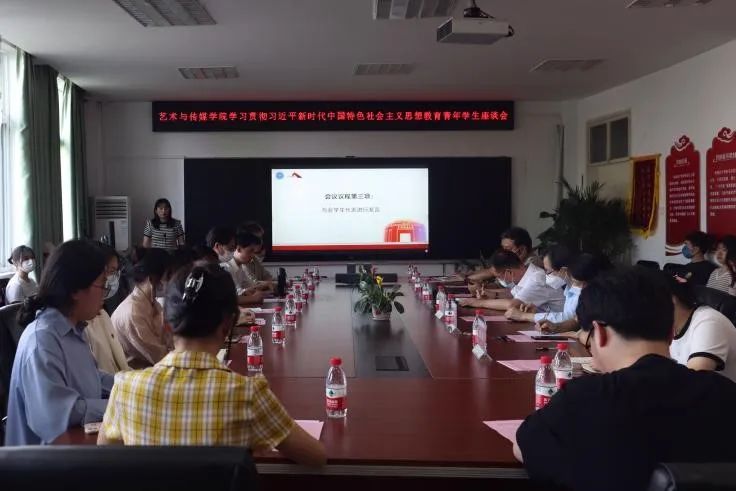 于6月1日下午4:30在学院1209会议室举行了学习贯彻习近平新时代中国特色社会主义思想主题教育青年师生座谈会暨“学习二十大、永远跟党走、奋进新征程”主题团日活动。学院党委书记晋曦,院长何清俊,副院长张梅珍、杨喆、袁玥、彭静,院党委副书记边建华,学工组专兼职辅导员及各年级学生代表参加本次座谈会,座谈会由学院团委书记单湉艺主持。